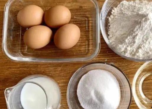 2. 烘焙材料:鸡蛋、白糖、低筋面粉、牛奶、黄油、植物油、泡打粉、香草精等。
